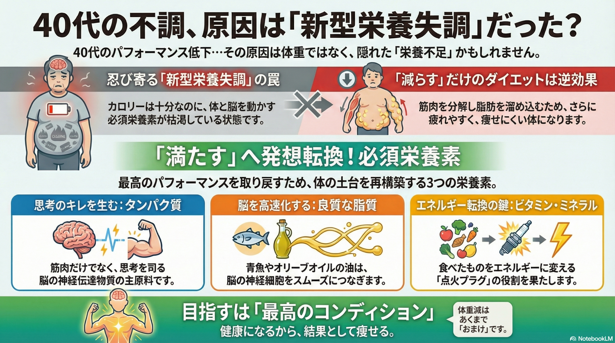 40代のパフォーマンス低下の多くは、体重のせいではなく、「新型栄養失調」が原因です。