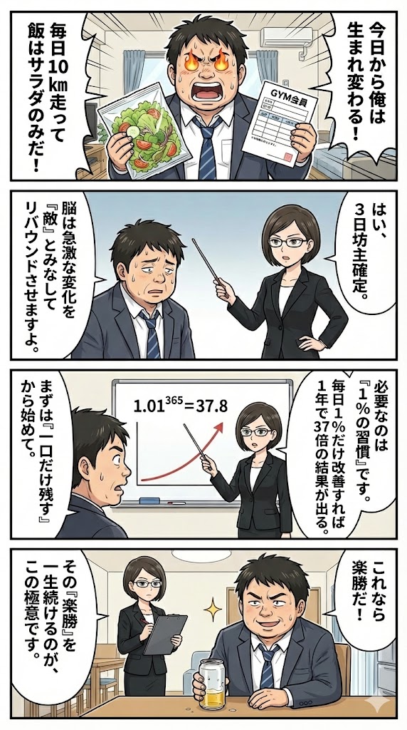 それは、「ダイエットは頑張るほど失敗する」という、常識とは真逆の事実でした。